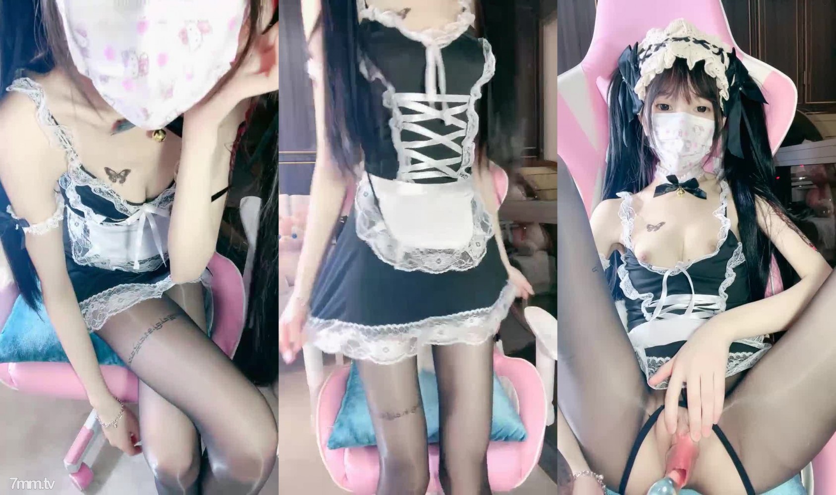 女仆装黑丝袜!极品双马尾少女!肛塞尾巴,地上假屌骑坐,张开双腿玻璃棒插穴,无毛肥逼极品
